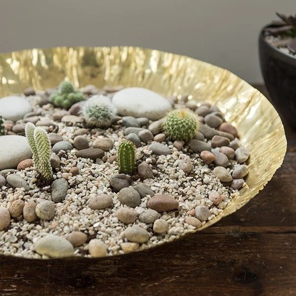This versatile brass bowl is a blank canvas waiting for you to create your own indoor or outdoor masterpiece. Just add inspiration. Fill it with fruit, fir cones or coiled string lights to make a striking centrepiece that looks fantastic on the festive table. Or layer it with soil and polished pebbles and dot it with cacti to create a mini desert landscape – the gleaming sides providing the sunshine.