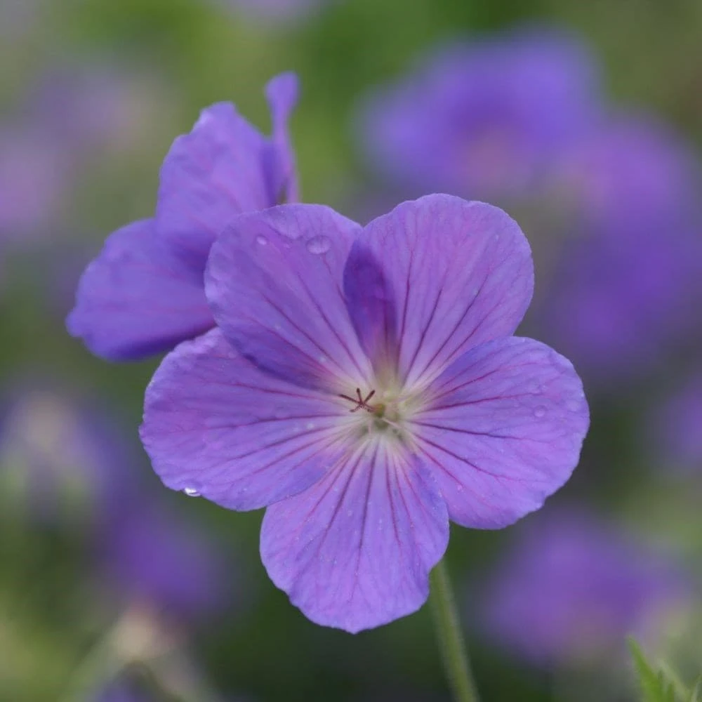 Providing colour for several months from midsummer, the slender upright spires of this sage are clothed in purple-pink buds, which open from the base upwards to lilac-purple, hooded flowers. Plant it towards the front of a sunny, well-drained border, or create drifts through a prairie-style garden where the bees and butterflies will flock to the flowers. Ht. 1m. - Garden care: Prepare the ground well by digging in lots of composted organic matter before planting. In midsummer rejuvenate the geranium by cutting back the old, flowered stems, and fresh new growth will soon appear. You can usually extend the flowering season of the salvia by removing the flower spikes as soon as they start to fade. Keep well watered until the plants are established, and apply a generous mulch of well-rotted garden compost or manure around the base of the plants in spring.