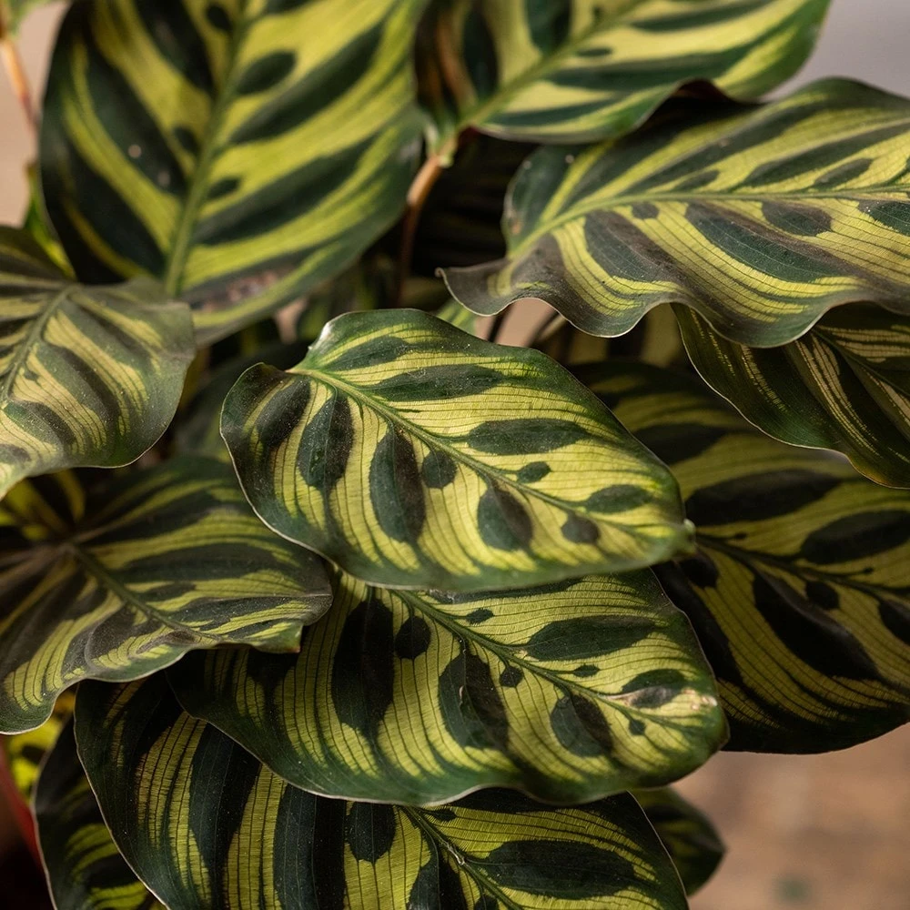 - Shop the look: Charcoal metal pot cover with metal interior Ø13cm The name may not be familiar, but their ‘praying habit’ might be. These popular houseplants have a curious habit of raising and lowering their leaves over the course of a day. It’s also a distinctive houseplant with broadly ovate, pale-green leaves, fascinating dark green markings and red-purple undersides.