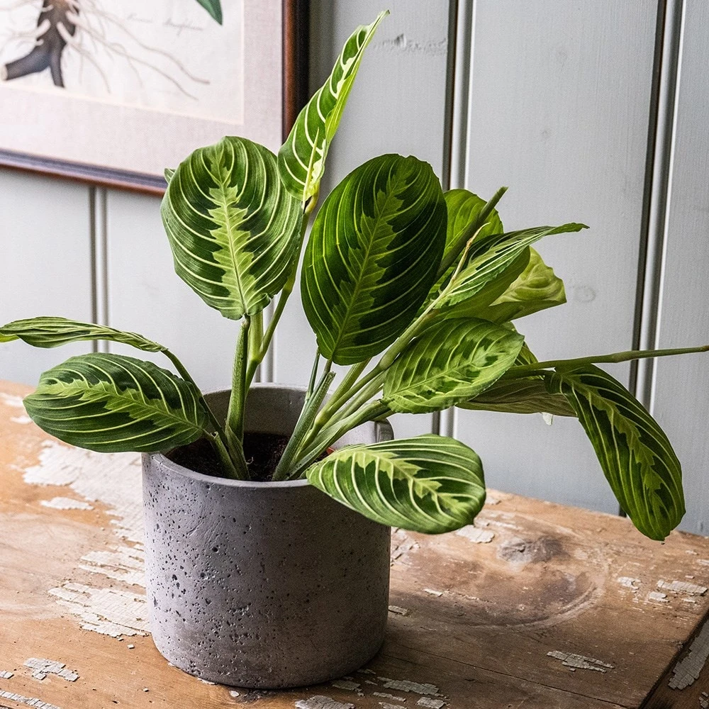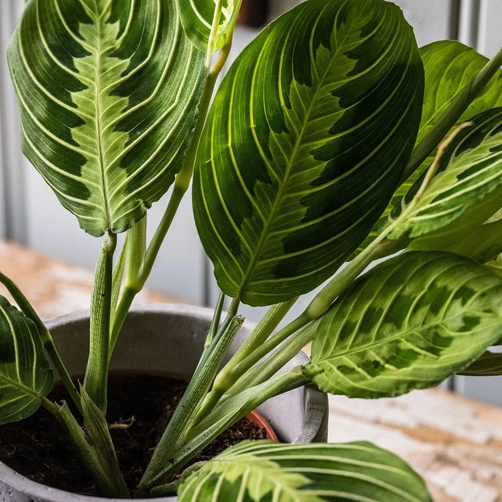 ‘Lemon Lime’ is a refreshing new twist on the popular prayer plant – pink-ribbed markings are replaced by light green markings although the attractive patterns along their midrib with yellow-green splotches remain. Once settled and the shoots have lengthened, mature plants often develop a delightful trailing habit. So if you’re looking for a fresh new look, this could be just the tonic!