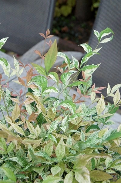 This new nandina is sure to bring a dollop of bright colour to your borders or pots. It has a bushy upright habit, but with a maximum height of around 120cm (4′), it is nogoing to dominate. The best thing about it is the foliage, which is heavily smattered with white. It emerges in spring with a coppery pink flush but this fades as the laves mature. It holds onto its foliage throughout the year and when the temperatures drop in winter, the colour seems to intensify. To top it off, the plant also produces sprays of small white flowers in summer.