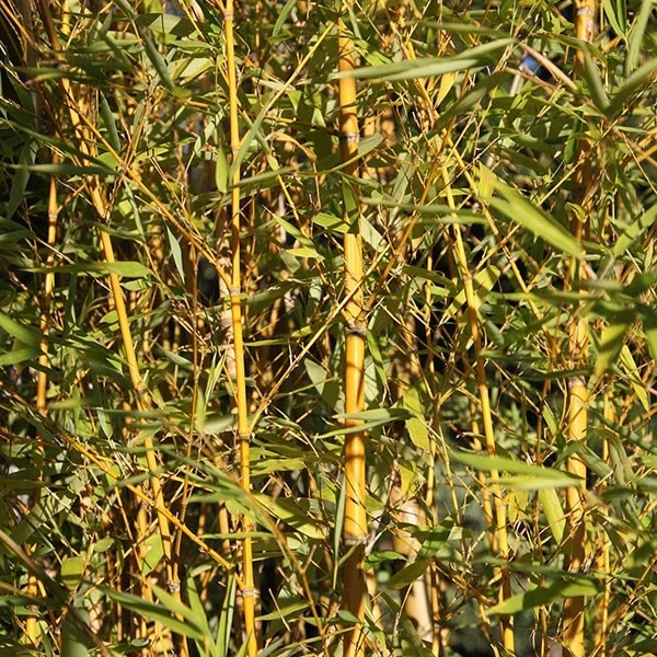 A tall, upright bamboo that is ideal for hedging or screening in larger areas. It has grooved canes that emerge each summer bright green, but if grown in sun, will turn yellowish brown as they mature. These colourful canes can really be shown off if the lower leaves are stripped, and it will then make an elegant, stand-alone specimen.